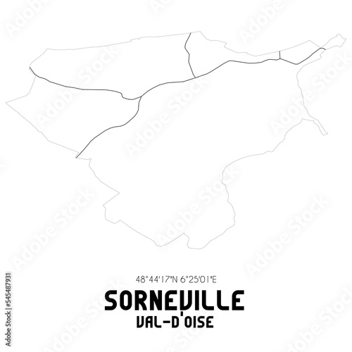SORNEVILLE Val-d'Oise. Minimalistic street map with black and white lines.