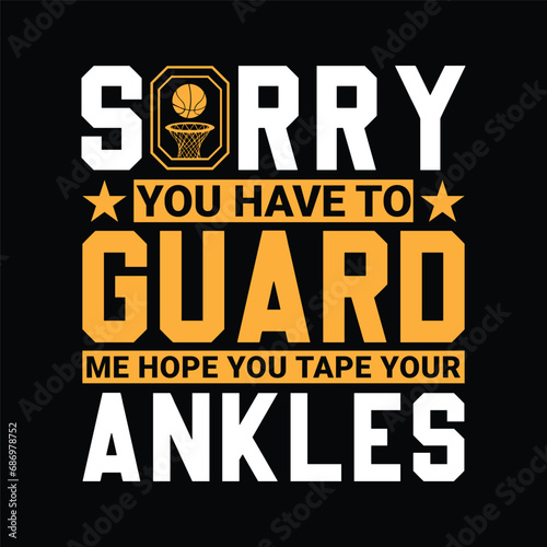 Sorry you have to guard me hope you tape your ankles. Basketball t shirt design. Sports vector quote. Design for t shirt, print, poster, banner, gift card, label sticker, mug design etc. POD