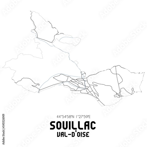 SOUILLAC Val-d'Oise. Minimalistic street map with black and white lines.