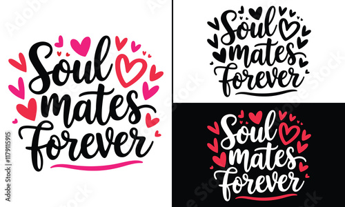 Soulmates forever T-Shirt Design, Valentine Day Typography T-Shirt Design, Valentine`s day t-Shirt Design vector