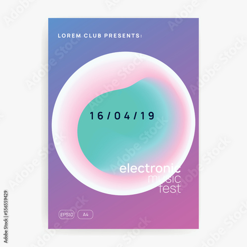Sound Poster. Futuristic Pattern For Presentation Concept. Fun Club Flyer. Trendy Effect For Brochure. Electro And Concert Vector. Pink And Turquoise Sound Poster