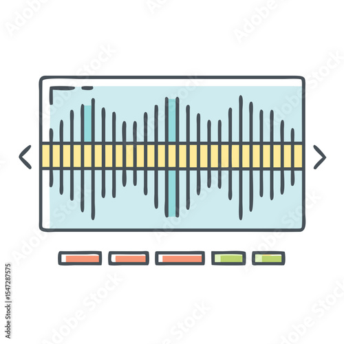 Sound wave graph interface with selection and navigation arrows icon design
