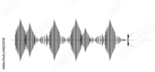 Soundwaves always remind me of trees on an island on a calm lake. Here a fisherman is seen at the end of an audio rendering of sound. .