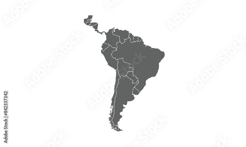 south america map isolated on white background. for website layouts, reports, annual infographics, world,travel around the world, map silhouette backdrop.