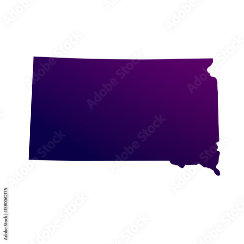 South Dakota map isolated on transparent white background. Blue and purple gradient textured map isolated on transparent png