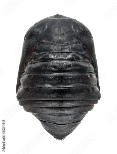 South India Small Tussore, Antheraea paphia, chrysalis, outside shell against white background