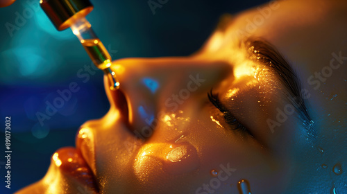South Korean Woman Using Tea Tree Oil on Acne-Prone Skin, Emphasizing Natural Antibacterial Properties for Healthy Skin