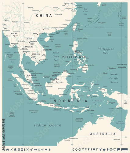 Southeast Asia Map - Vintage Vector Illustration
