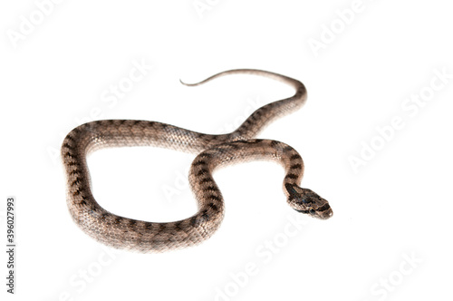 Southern smooth snake (Coronella girondica) on white background, Italy.