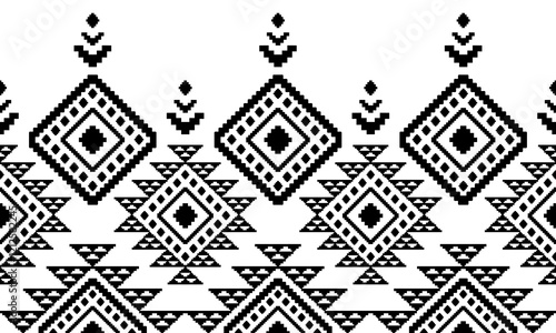 Southwest Aztec geometric Native American Mexican Navajo tribal ethnic boho indian texture ornament seamless pattern fabric black and white design vector for woven textile printing blanket rug carpet