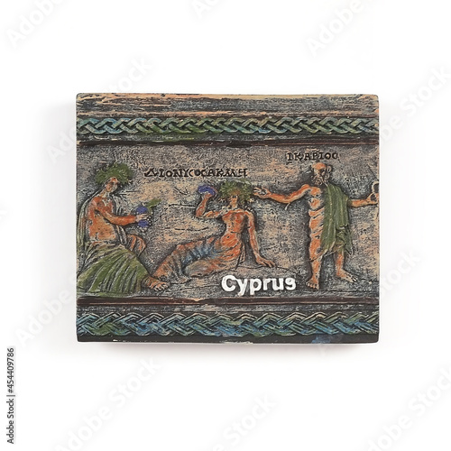 Souvenir from the island of Cyprus (Greece) with the image of the ancient mythological story. Design element with clipping path