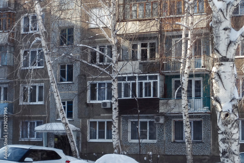 Soviet architecture. Ust-Kamenogorsk (Kazakhstan). Apartment building. Soviet architectural style. Typical socialist apartment building. Apartment block