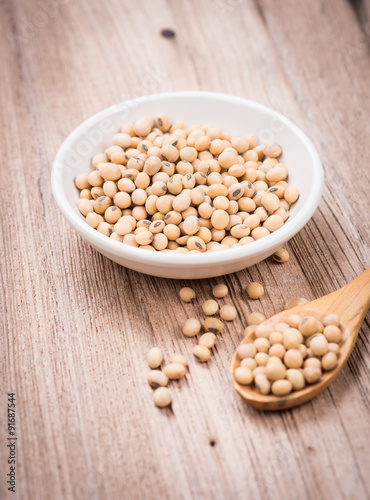 Soybeans in white ceramic bowl
