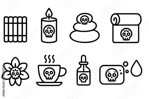 Spa, relaxation outline icon set. Relaxing, aromatherapy, wellness, mindfulness icons.