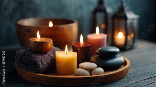 Spa setups with candles and quiet routines concept