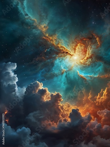 Space abstract background fantasy illustration planets, stars and space clouds wallpaper, shining stars and objects