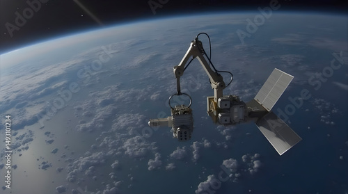Space debris collector orbiting Earth, Ai generated image