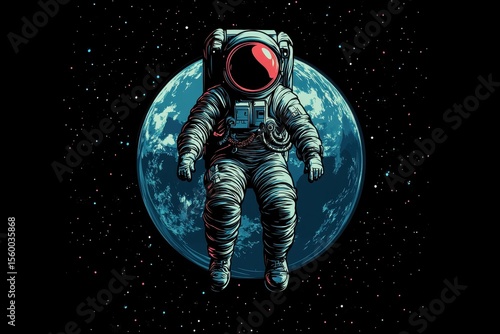 Space Exploration Vector vector illustration of an astronaut floating in space with the Earth, Vector illustration of an astronaut in space, with Earth prominently displayed