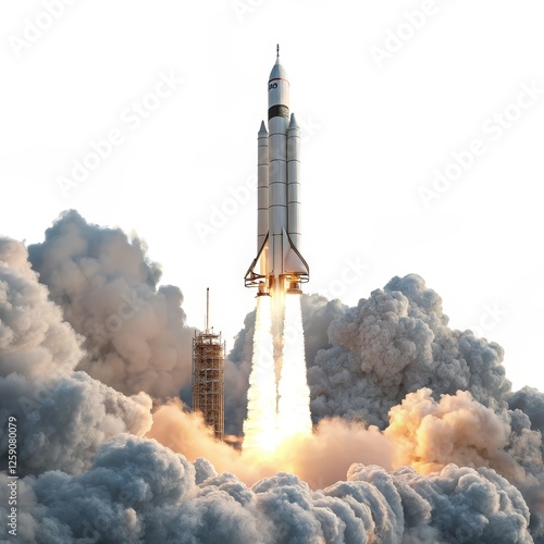 Space Shuttle Launch Dramatic 3D Render, Smoke and Fire, Ascent, Rocket, Space Exploration Space travel, rocket launch