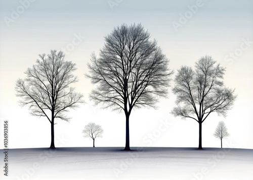 Space Test of Tree Silhouettes in Hand Drawn Style, Isolated Illustrations, Nature Art, Empty Tree Area, Minimalist Design, Black and White, EPS Format
