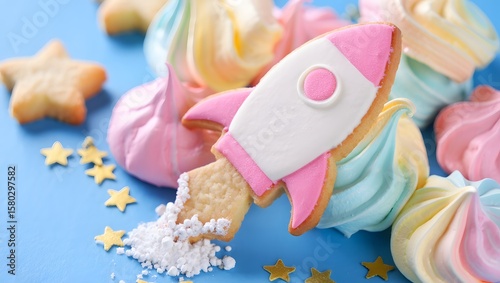 Space Themed Cookies - Rocket Ship & Colorful Meringues for a Galactic Celebration