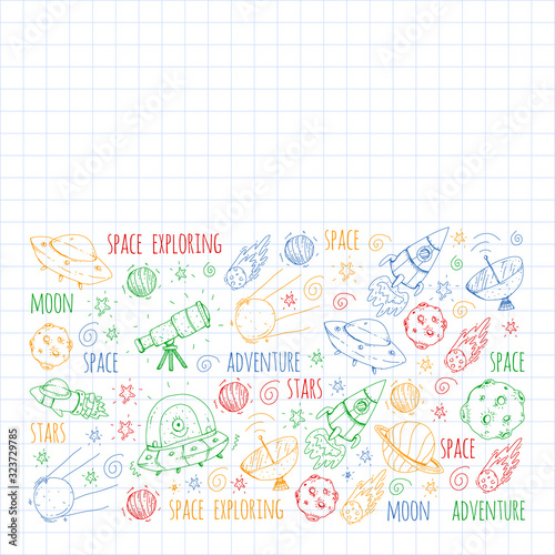 Space vector illustration. Science, technology pattern. Rocket and spaceships.