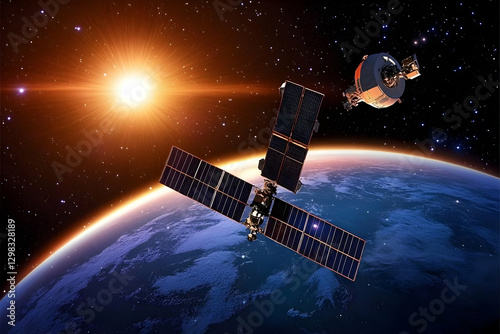 Spacecraft Orbiting Earth Sunrise 3D Illustration