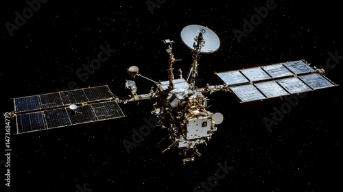 Spacecraft orbiting Earth with solar panels extended, showcasing advanced technology and design in the vast cosmos