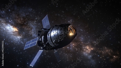Spacecraft with Solar Panels Against a Starry Background