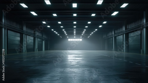 Spacious Dark Hall or Garage. AI generated illustration