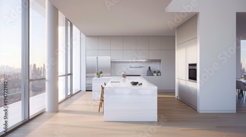 Spacious Minimalist Residence with Clean Lines and Maximized Natural Light in White, Gray, and Beige Tones - Serene and Elegant Home Design