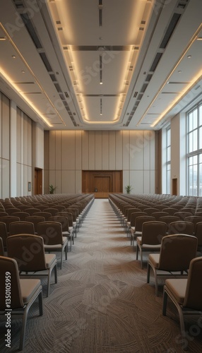 Spacious Modern Conference Hall with Rows of Chairs and Light Effects