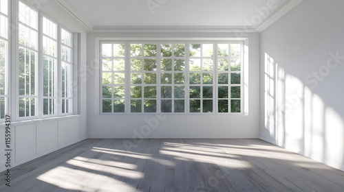 Spacious Modern Office with Blank White Wall and Large Windows for Mockups