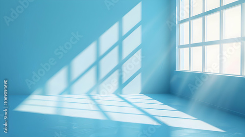 Spacious Modern Room with Blue Abstract Background and Sunlit Shadows