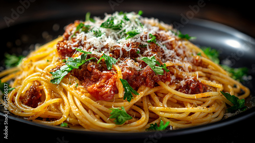 Spaghetti Bolognese with Fresh Parsley and Parmesan Cheese