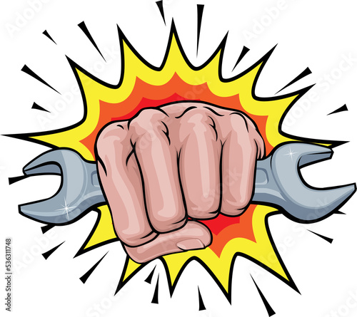 Spanner Wrench Fist Hand Explosion Pop Art Cartoon
