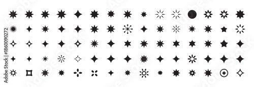 Sparkle star collection. Shine light, glow, twinkle, glitter, and starburst effect set on white