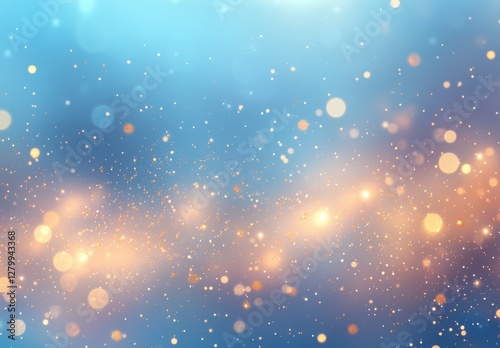 Sparkling bokeh effect with soft blue and gold tones creating a dreamlike background for festive celebrations and photography creativity