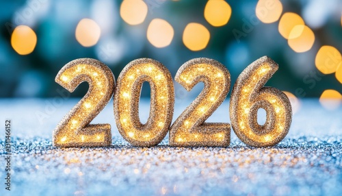 Sparkling Celebration 2026 New Year Sign in Glittering Gold on a Shimmering Background