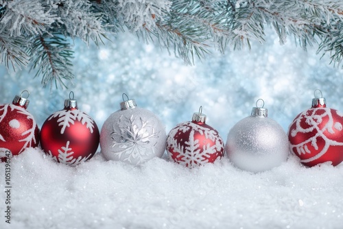 Sparkling Christmas baubles in snow