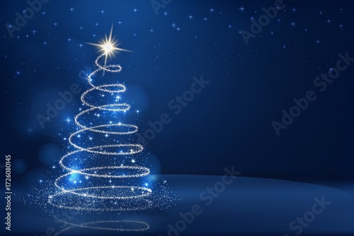 Sparkling christmas tree on blue background with stars and bokeh lights
