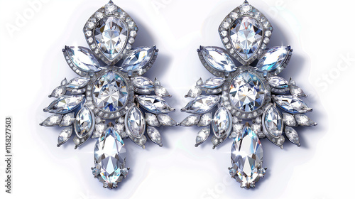 Sparkling diamond earrings with various gemstone cuts luxurious fine jewelry transparent background