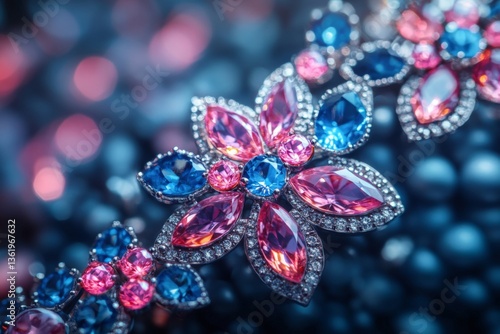 Sparkling floral jewelry design showcasing vibrant colored gems and intricate craftsmanship at a jewelry exhibition