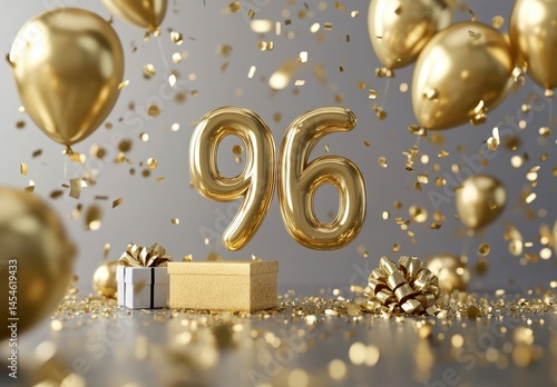 Sparkling Gold 96 Celebration Party with Balloons and Gifts