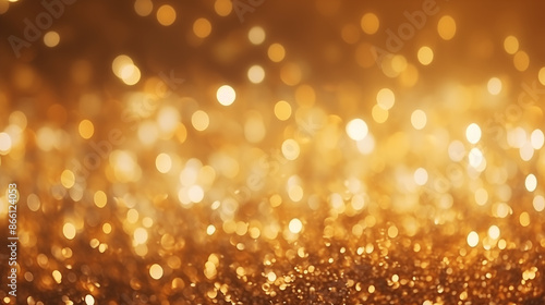 Sparkling Gold Bokeh Background, Festive Glitter, Warm Holiday Glow with Copy Space