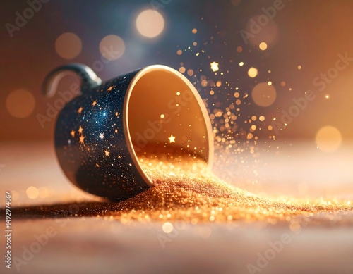Sparkling Gold Glitter Spilling from a Starry Mug Festive Holiday Magic