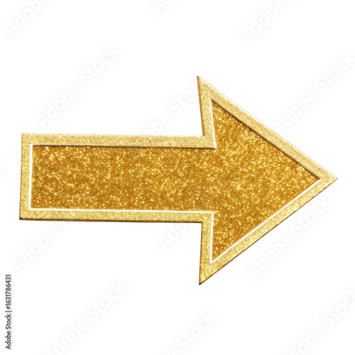 Sparkling golden arrow pointing rightward with a subtle outline isolated on transparent background