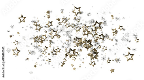 Sparkling golden stars burst on white. Perfect for holidays, celebrations, and festive designs.