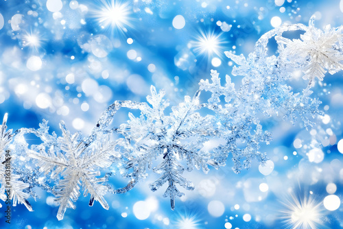 Sparkling ice crystals arranged as a garland against a bokeh background