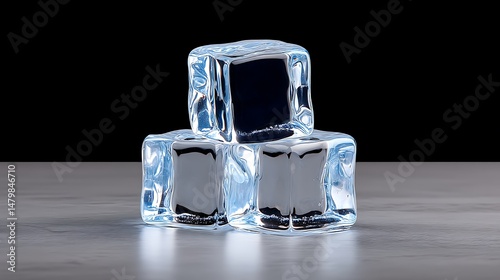 Sparkling Ice Cubes on Grey Surface with Black Background.